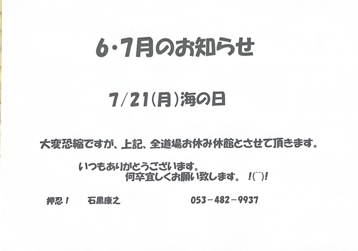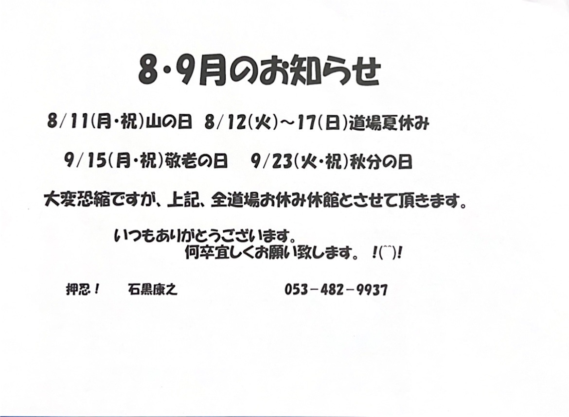 取り急ぎ、現段階で決まっている石黒道場夏の行事日程をご連絡させて頂きます。
