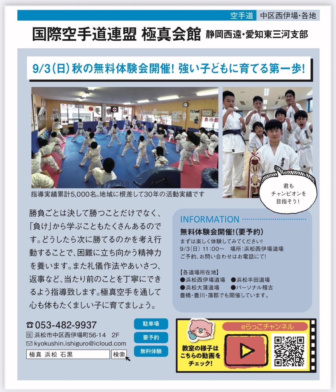9/3日曜日 秋の無料体験会開催