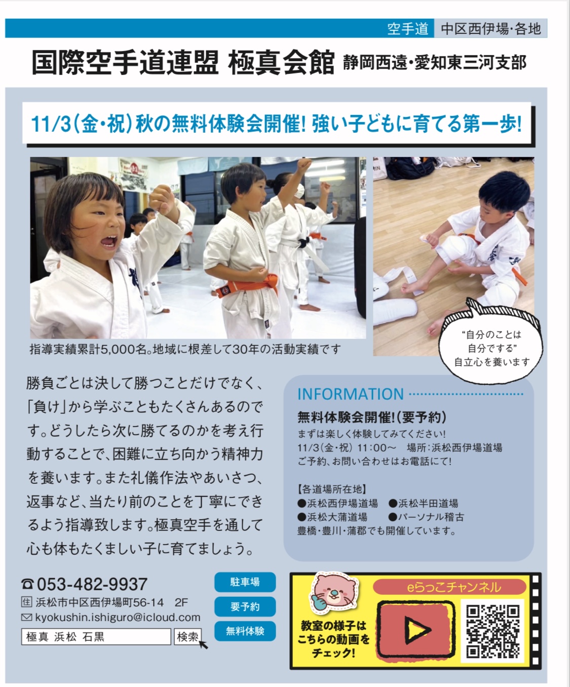 11/3(金・祝)極真空手 秋の無料体験会開催