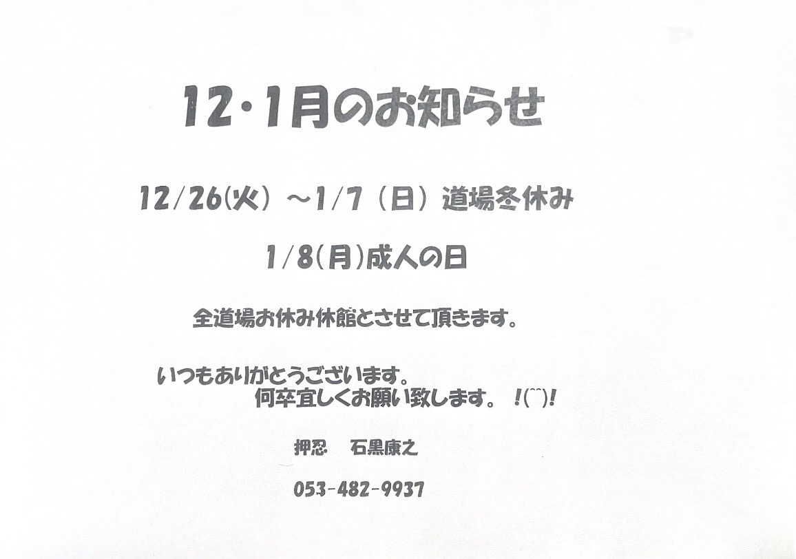 12月・1月のお知らせ