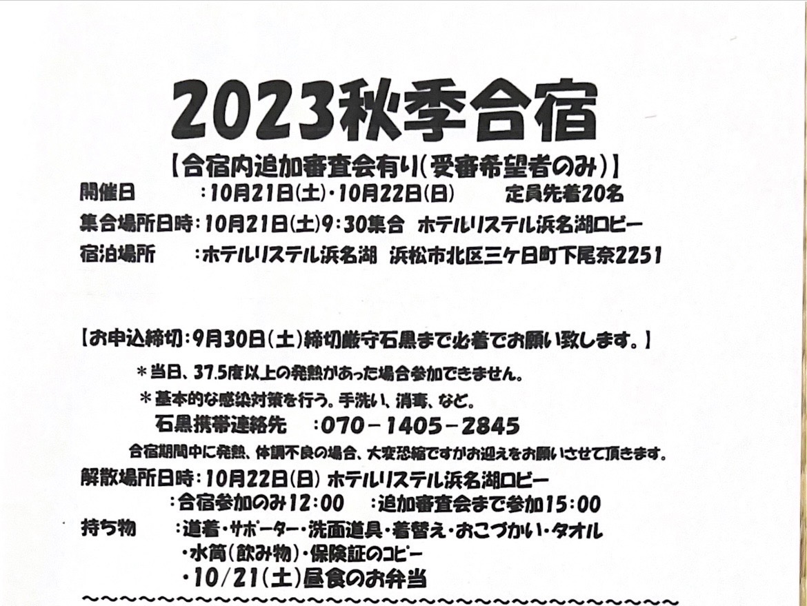 2023秋季合宿のお知らせ