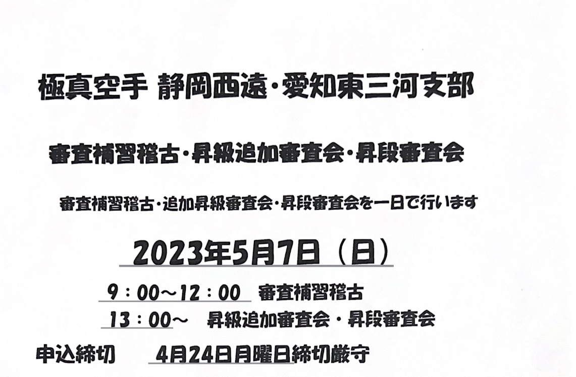 「審査補習稽古・昇級追加審査会・昇段審査会のお知らせ」
