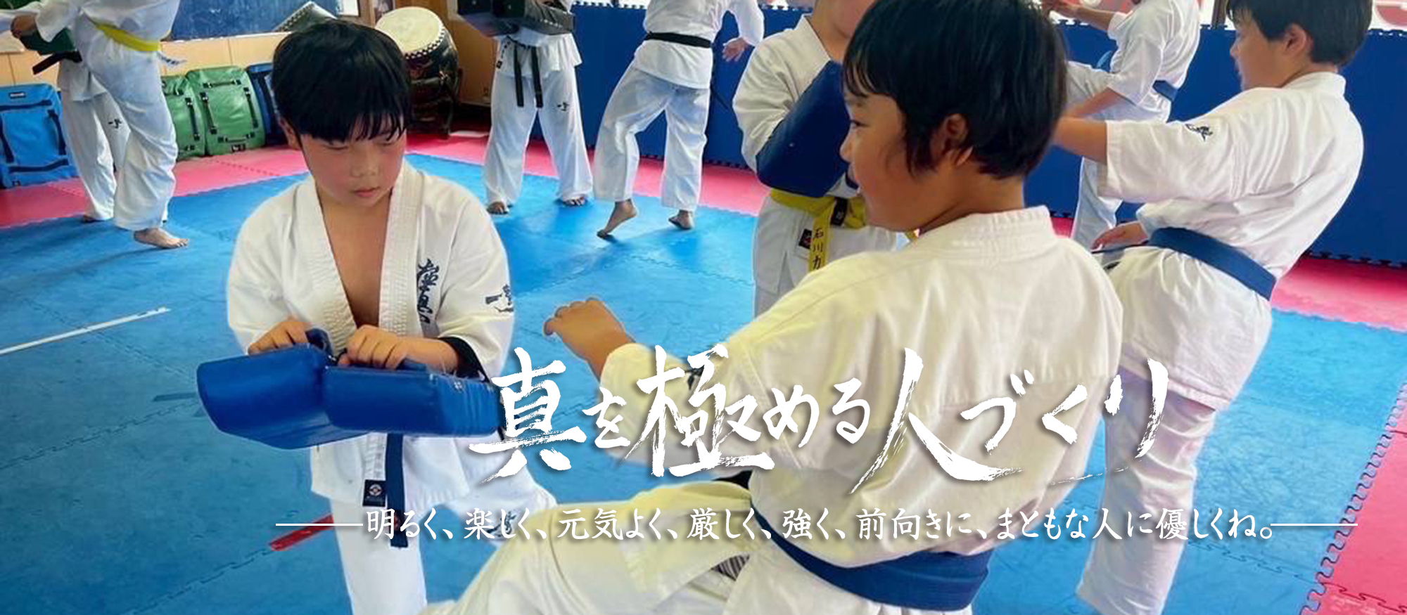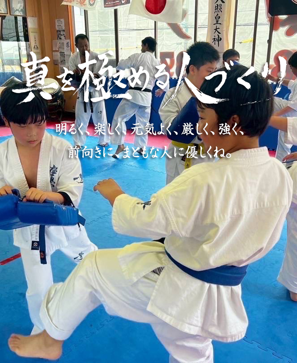 極真会館では武道である空手を通して身体を鍛え強くなることはもちろん、人として強く生きる力を身に付けさせるために心を磨き、道徳的にも倫理的にも優れた社会や国家の財産となる人財を育てます。