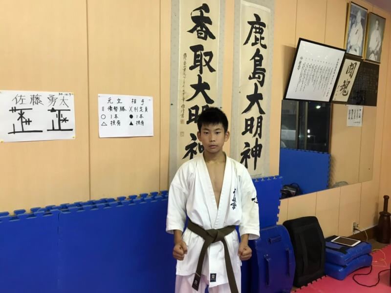 始めて3年経った頃、怖くて組手が弱い自分に「勇太は型が向いているから、先ずは型で自信をつけて、それを組手に繋げていけばいい。」と導いてもらい、その言葉を胸に一生懸命練習をして、初試合で入賞することができ、やる気も湧いてきました。