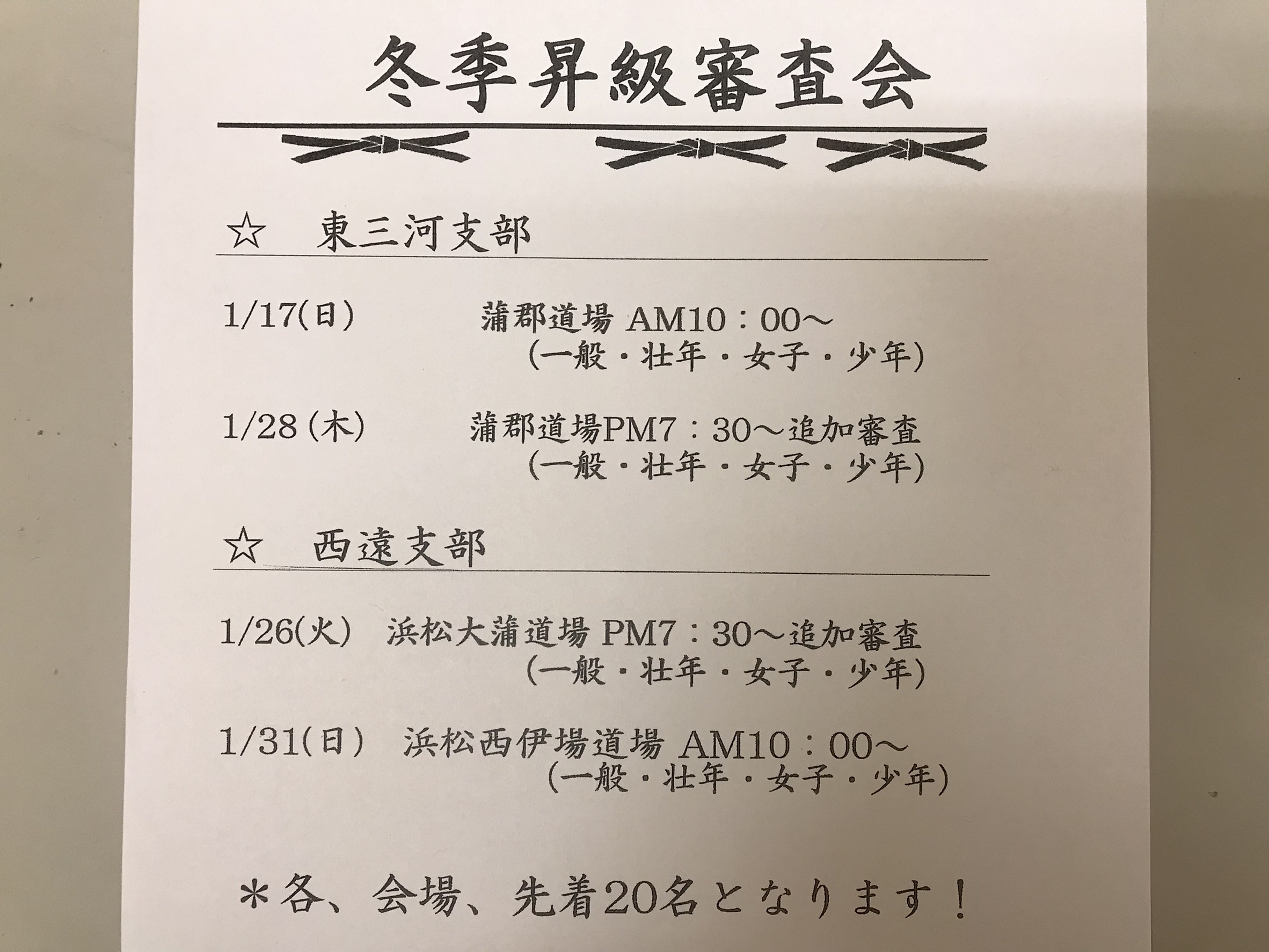 冬季昇級審査会日程