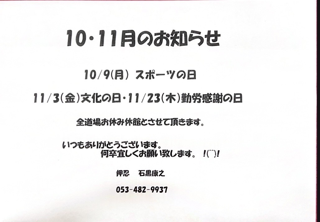 10・11月のお知らせ