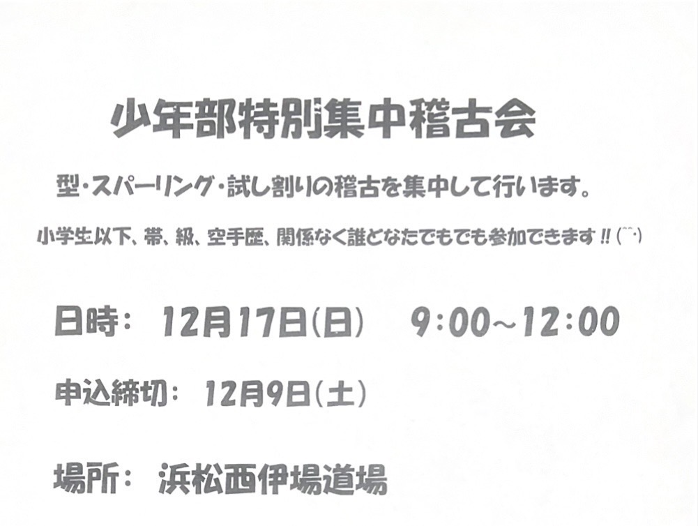 少年部特別集中稽古会のお知らせ