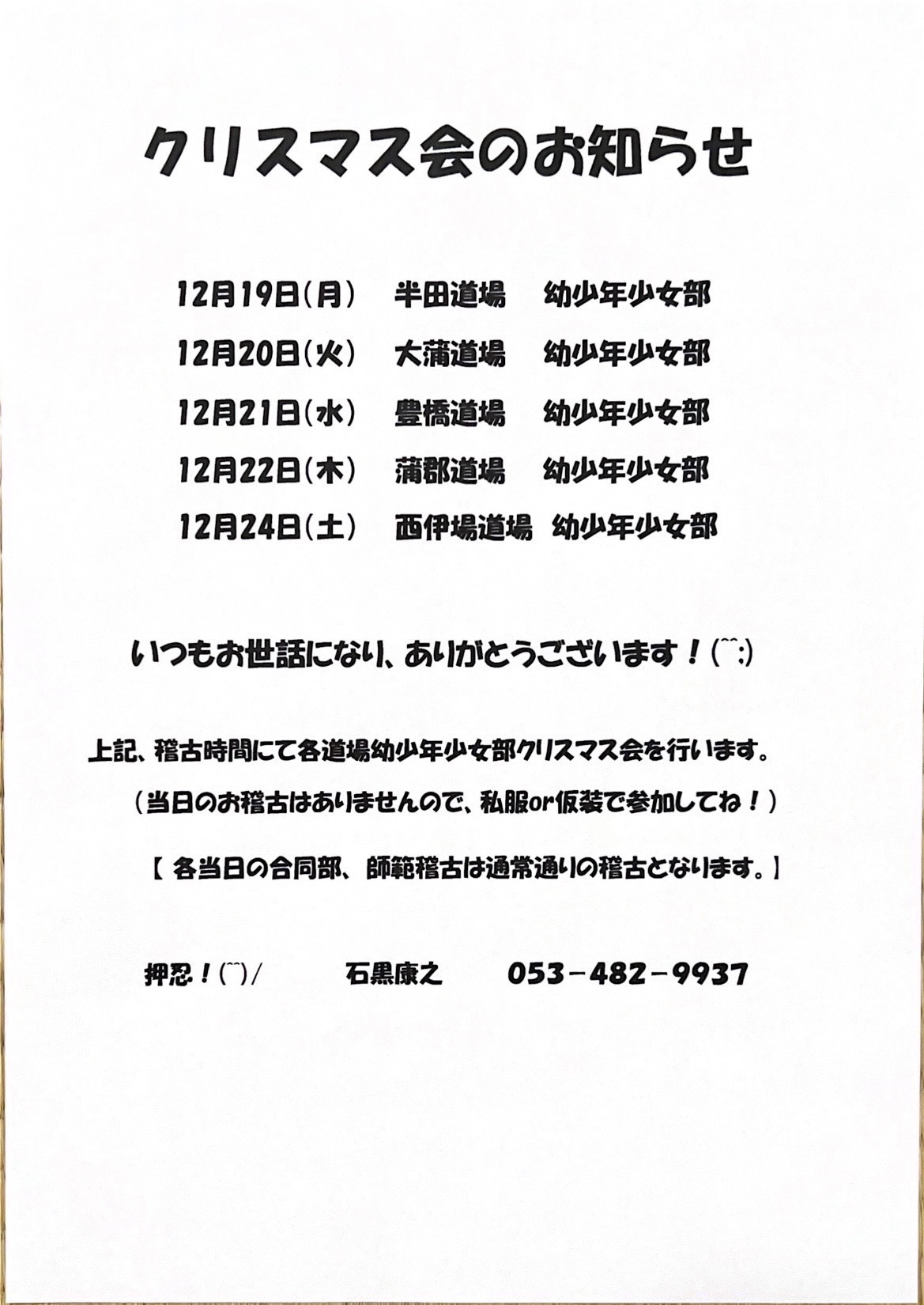 クリスマス会のお知らせ