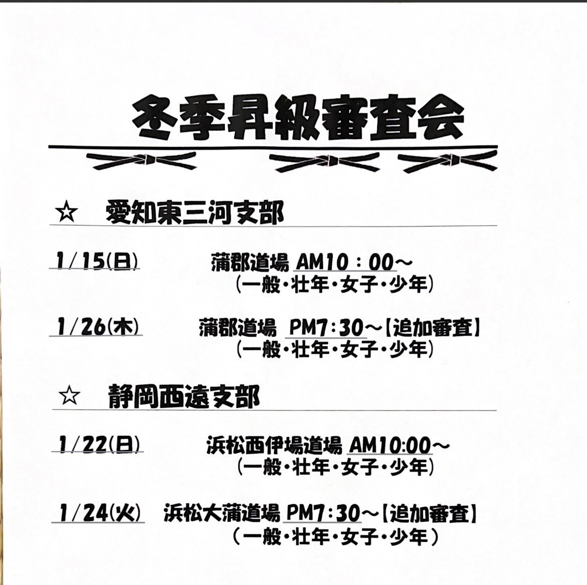 冬季昇級審査会のお知らせ