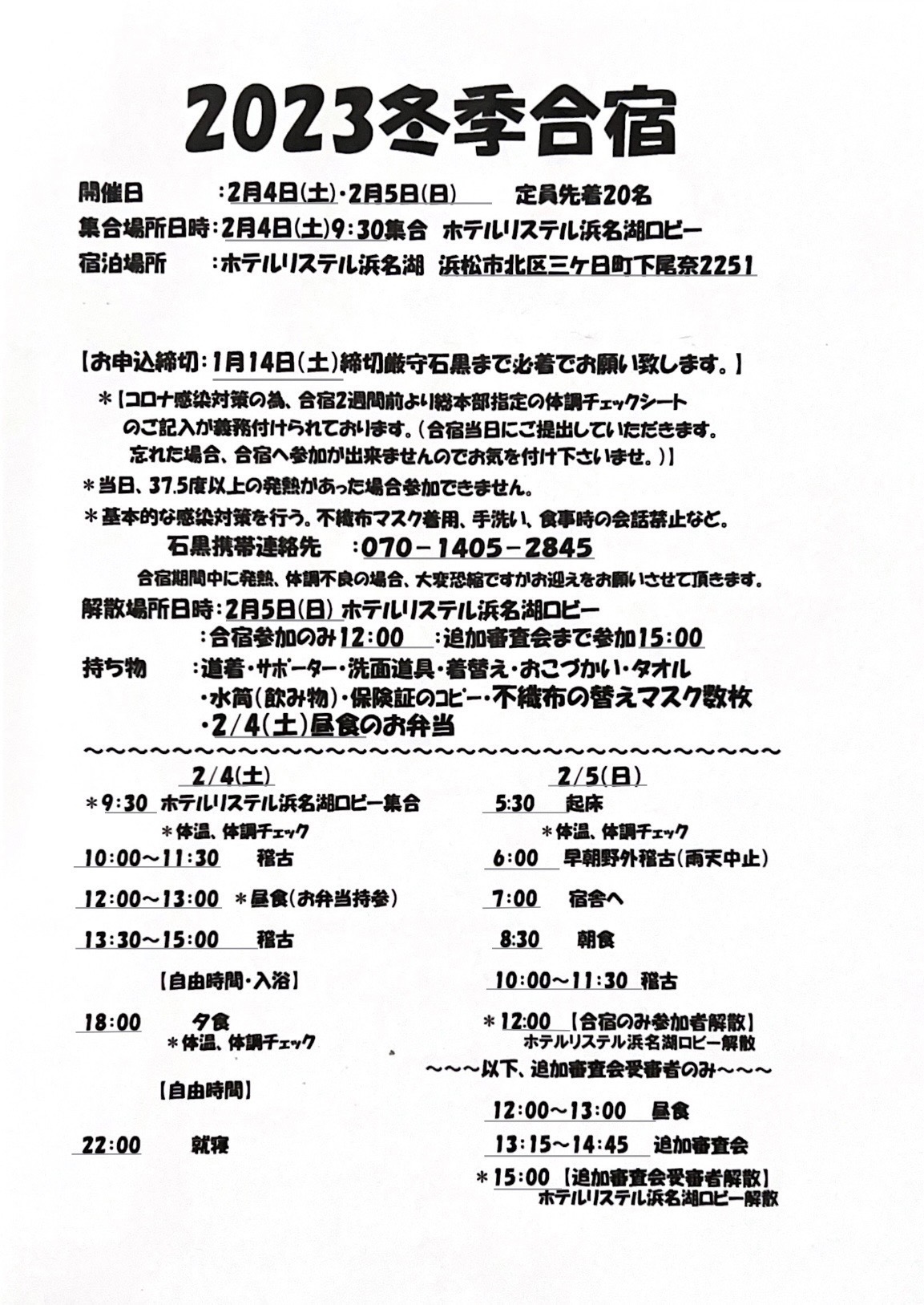 2023冬季合宿のお知らせ