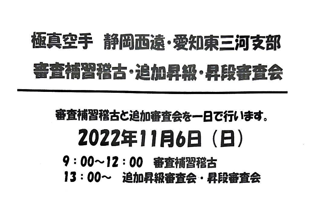 秋季審査補習稽古・追加昇級審査会・昇段審査会のお知らせ