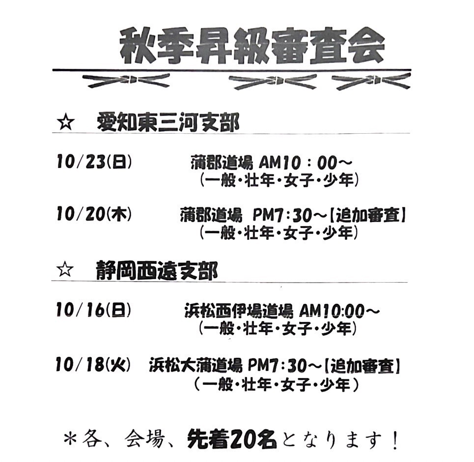 2022夏季昇級審査会、いよいよ今週末より各会場分散にて随時始まります。