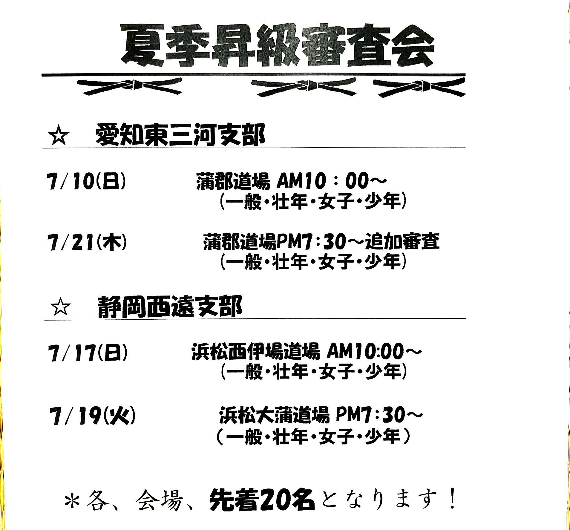 夏季昇級審査会に関してのお知らせとなります。