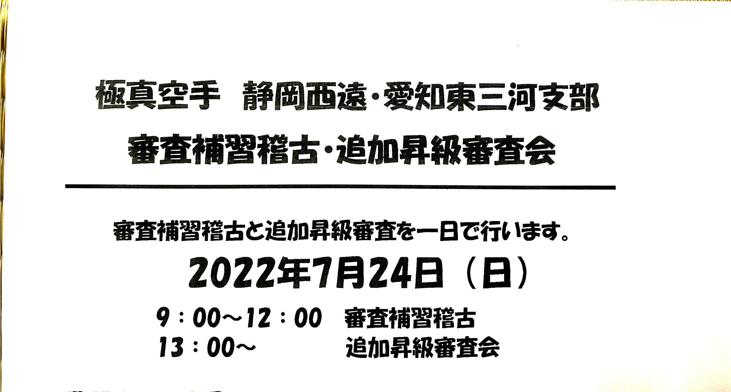2022夏季審査補習稽古・追加審査会のお知らせ